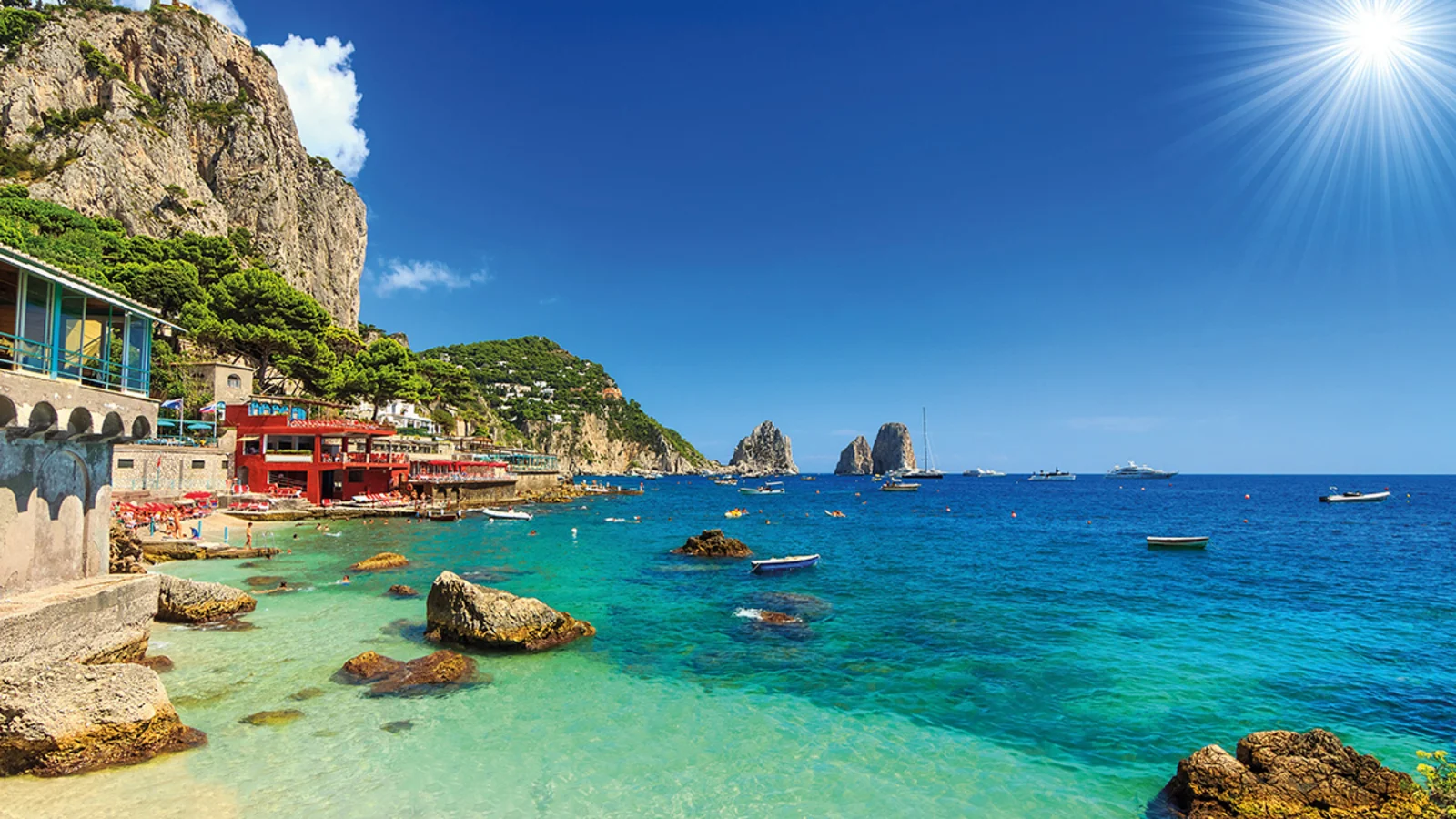 Die wohl bekannteste Insel Italiens erwartet uns. Mit dem Boot erreichen wir in etwa einer Stunde Capri. Während einer Inselrundfahrt in örtlichen Minibussen besuchen wir unter anderem das reizvolle Städtchen Capri mit seiner berühmten Piazzetta und die Augustus-Gärten mit Blick auf das Wahrzeichen der Insel – die Faragolioni-Klippen.
