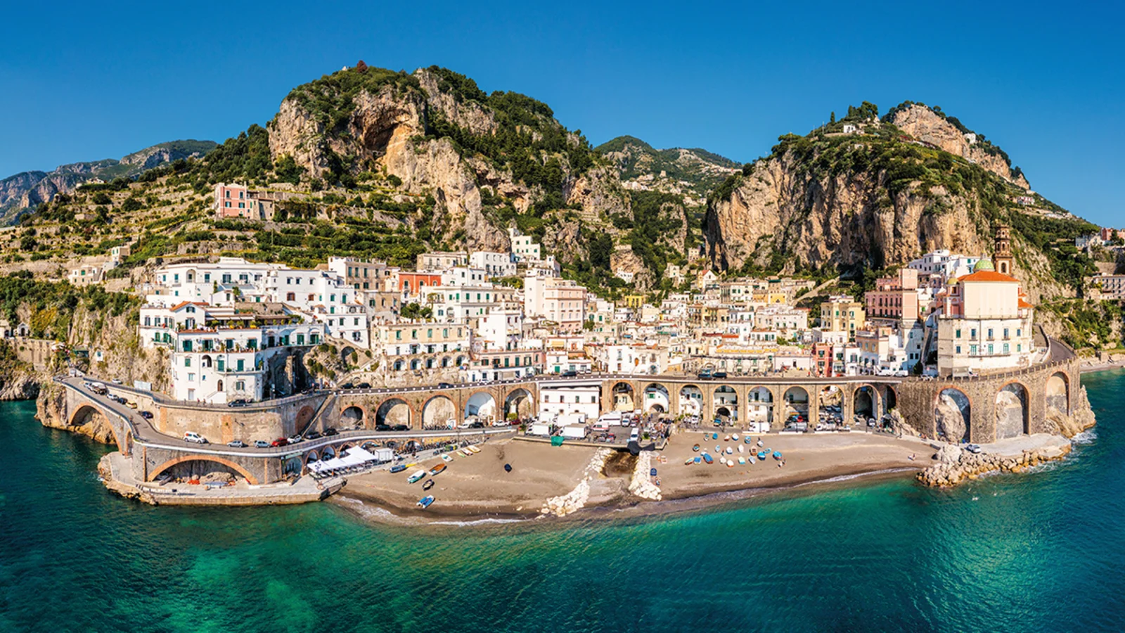 Eine der schönsten und bizarrsten Küstenabschnitte Italiens steht auf dem Programm – die Amalfiküste. Auf der Strecke entdecken wir hinter jeder der zahlreichen Kurven neue Landschaften. Schroff abfallende Felsen mit bizarren Formen, tiefe Schluchten und die Stadt Amalfi, deren Häuser fast schon an den Klippen zu kleben scheinen. Wir besteigen ein Schiff und geniessen das Küstenpanorama vom Wasser aus.